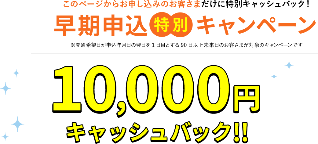 - 適用条件を満たしたお客さまへ10,000円分をキャッシュバックいたします。