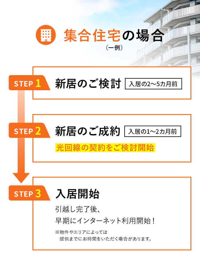 ※お引越し先の回線工事に1~2カ月程度、期間をいただきます。