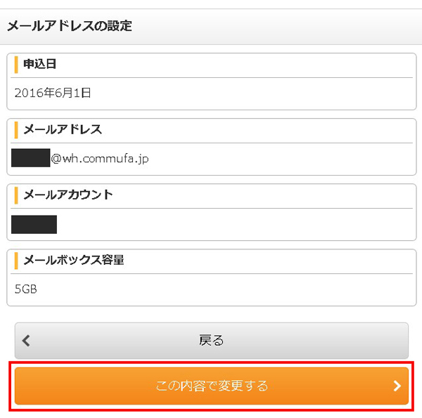 変更内容をご確認の上、「この内容で変更する」を選択してください。