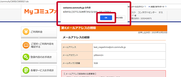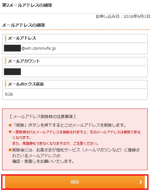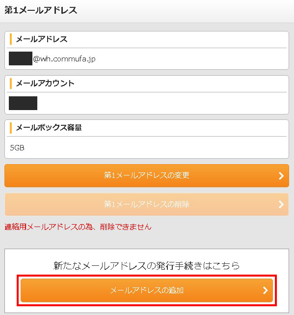 ・コミュファ光からの連絡⽤として登録されているメールアドレスは削除できません。