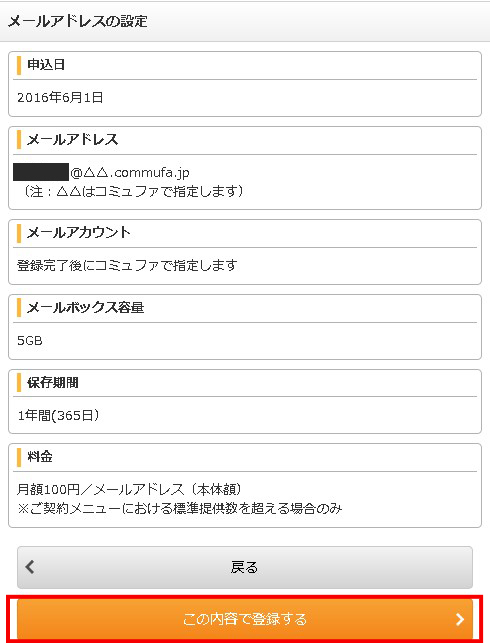 申込内容をご確認の上、「この内容で登録する」を選択してください。