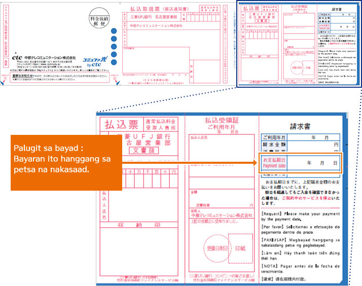 Kami ay magpapdala ng isang blue postcard (hagaki) sa pinaka unang bill.