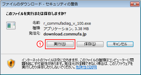 - 「パソコン診断ツール」のダウンロードをクリックし、「実行(R)」をクリックします。