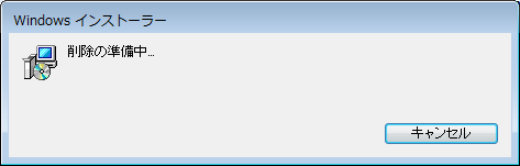 以下のような画面が表示されアンインストールが続行しますので、しばらくお待ちください。 アンインストール後、アンインストールプログラムは自動的に終了します。