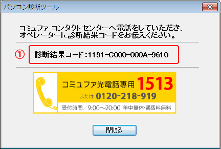 - コミュファ コンタクトセンターにお電話していただき、画面に表示される「診断結果コード」をお伝えください。