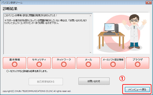 - パソコン診断ツールを実行しても修復が行えない場合は「お問い合わせ」をクリックしてください。