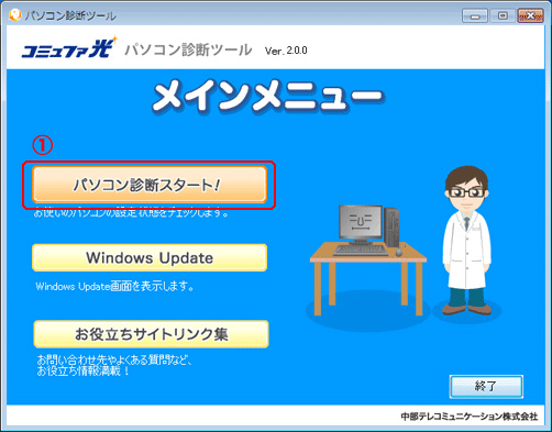 - 「パソコン診断スタート」をクリックします。