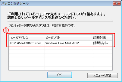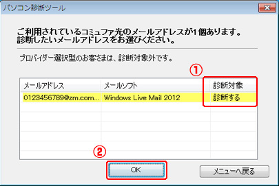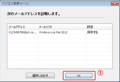 - 診断希望のメールアドレスと保存状態を確認し、問題なければ「OK」をクリックします。
