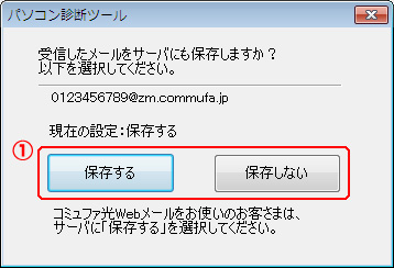 メールをすべてパソコンに取り込む場合は「保存しない」をクリックします。