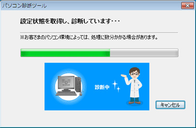 パソコン診断ツールがお客さまのパソコンを診断しています。しばらくお待ちください。