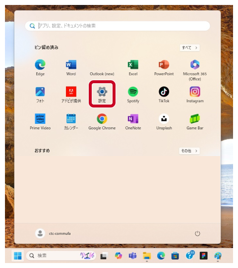 2. 「設定」を選択します。
