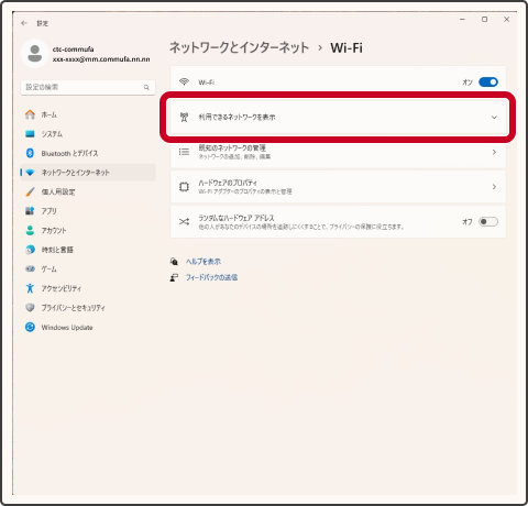 5. 「利⽤できるネットワークを表⽰」を選択します。